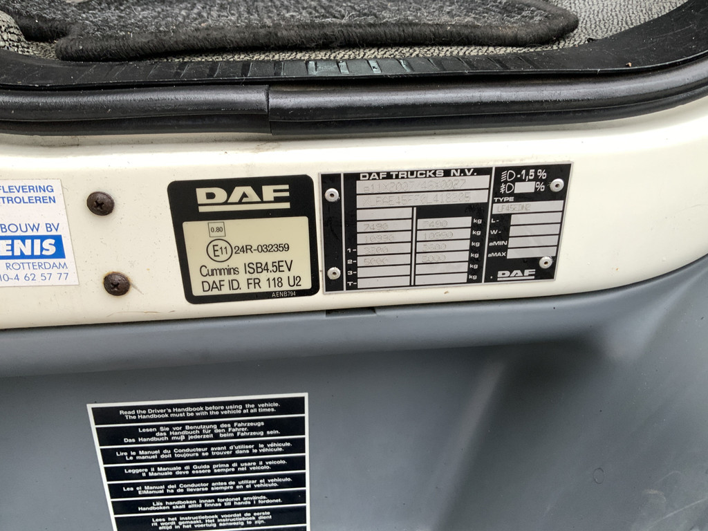 DAF FA LF45 Automaat Airco Cruise Meubelbak&Laadklep Dhollandia 1500 kg Bakmaat.L.625/B.247/H.248